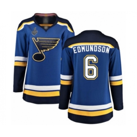 >Women's St. Louis Blues #6 Joel Edmundson Fanatics Branded Royal Blue Home Breakaway 2019 Stanley Cup Final Bound Hockey Jersey