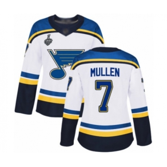 Women's St. Louis Blues #7 Joe Mullen Authentic White Away 2019 Stanley Cup Final Bound Hockey Jersey