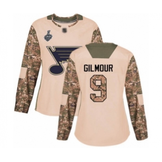 Women's St. Louis Blues #9 Doug Gilmour Authentic Camo Veterans Day Practice 2019 Stanley Cup Final Bound Hockey Jersey