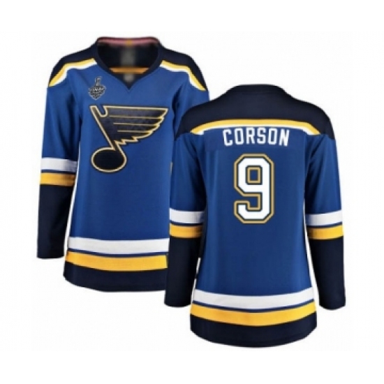 >Women's St. Louis Blues #9 Shayne Corson Fanatics Branded Royal Blue Home Breakaway 2019 Stanley Cup Final Bound Hockey Jersey