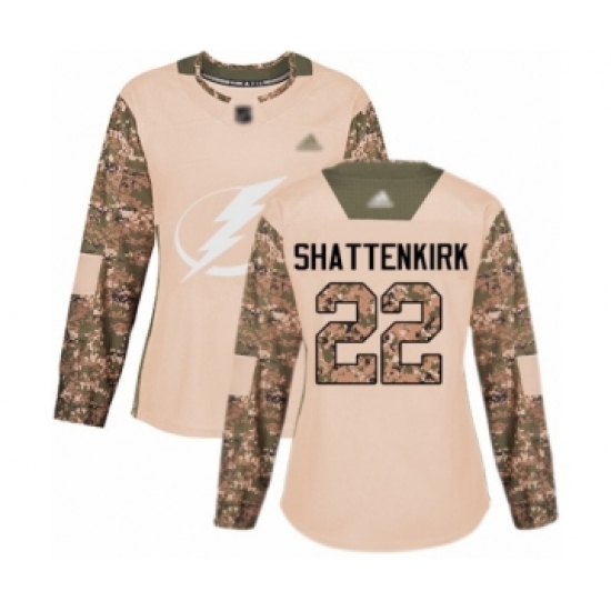 Women's Tampa Bay Lightning #22 Kevin Shattenkirk Authentic Camo Veterans Day Practice Hockey Jersey