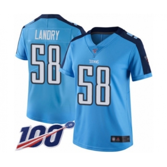 >Women's Tennessee Titans #58 Harold Landry Limited Light Blue Rush Vapor Untouchable 100th Season Football Jersey