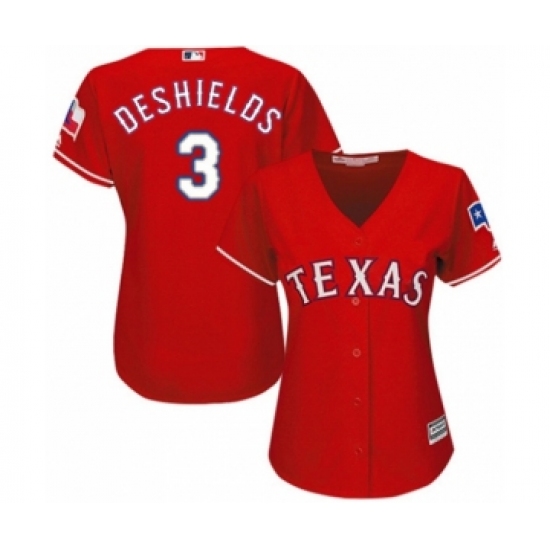 Women's Majestic Texas Rangers #3 Delino DeShields Authentic Red Alternate Cool Base MLB Jersey