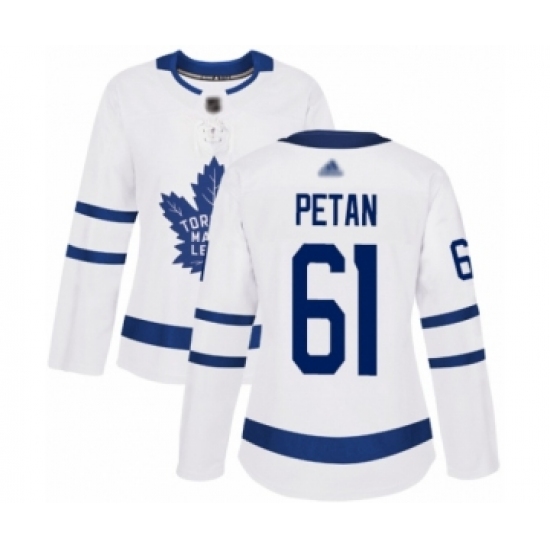 Women's Toronto Maple Leafs #61 Nic Petan Authentic White Away Hockey Jersey