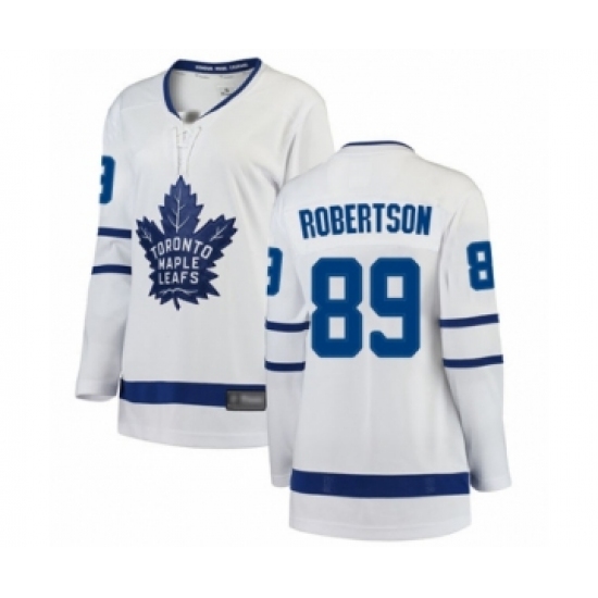 >Women's Toronto Maple Leafs #89 Nicholas Robertson Authentic White Away Fanatics Branded Breakaway Hockey Jersey