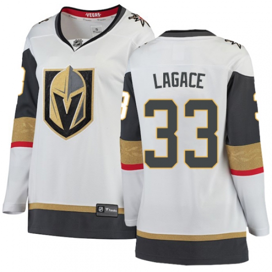 >Women's Vegas Golden Knights #33 Maxime Lagace Authentic White Away Fanatics Branded Breakaway NHL Jersey