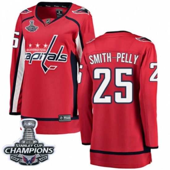 Women's Washington Capitals #25 Devante Smith-Pelly Fanatics Branded Red Home Breakaway 2018 Stanley Cup Final Champions NHL Jersey