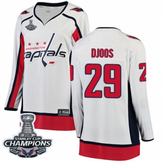Women's Washington Capitals #29 Christian Djoos Fanatics Branded White Away Breakaway 2018 Stanley Cup Final Champions NHL Jersey