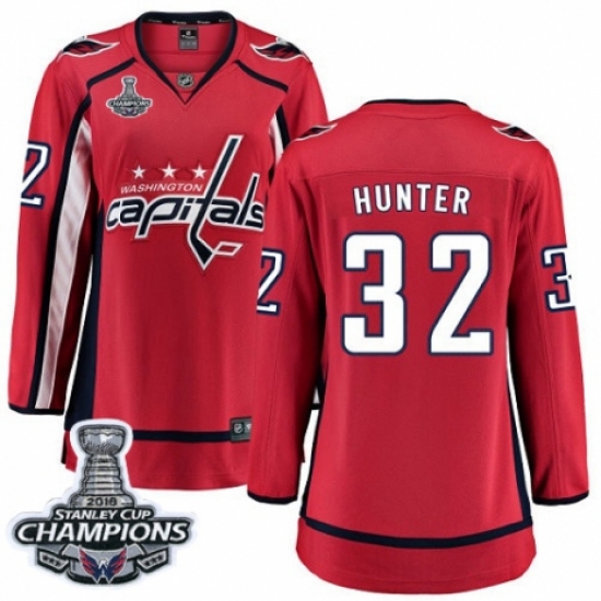 Women's Washington Capitals #32 Dale Hunter Fanatics Branded Red Home Breakaway 2018 Stanley Cup Final Champions NHL Jersey