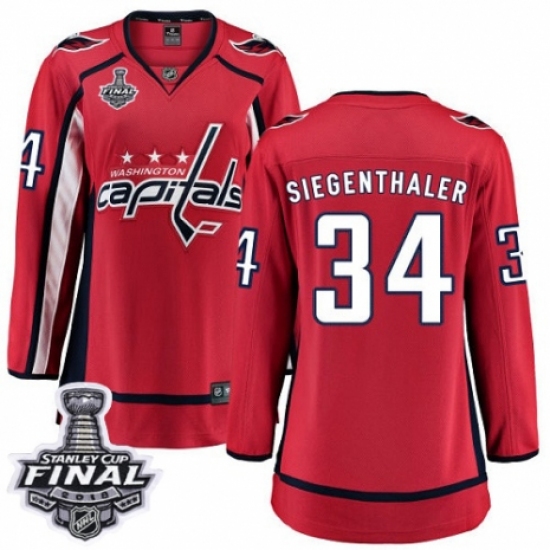 Women's Washington Capitals #34 Jonas Siegenthaler Fanatics Branded Red Home Breakaway 2018 Stanley Cup Final NHL Jersey