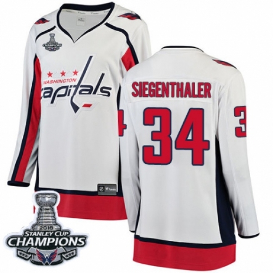 Women's Washington Capitals #34 Jonas Siegenthaler Fanatics Branded White Away Breakaway 2018 Stanley Cup Final Champions NHL Jersey