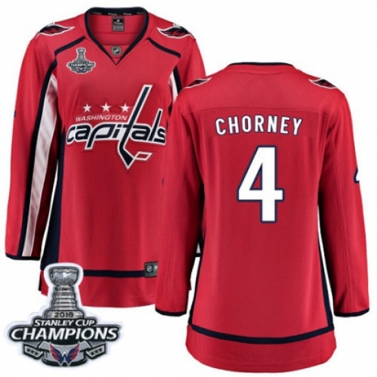 Women's Washington Capitals #4 Taylor Chorney Fanatics Branded Red Home Breakaway 2018 Stanley Cup Final Champions NHL Jersey