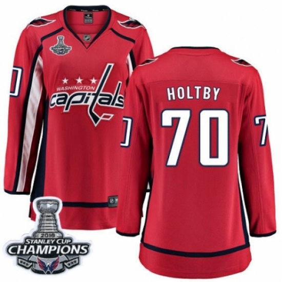 Women's Washington Capitals #70 Braden Holtby Fanatics Branded Red Home Breakaway 2018 Stanley Cup Final Champions NHL Jersey