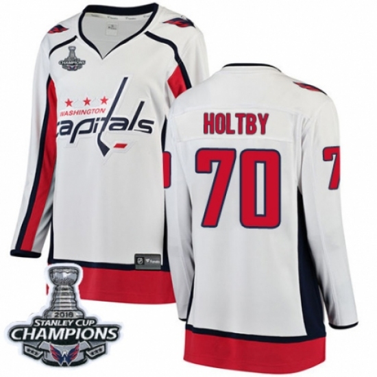 Women's Washington Capitals #70 Braden Holtby Fanatics Branded White Away Breakaway 2018 Stanley Cup Final Champions NHL Jersey