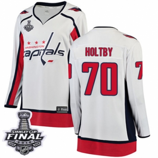 Women's Washington Capitals #70 Braden Holtby Fanatics Branded White Away Breakaway 2018 Stanley Cup Final NHL Jersey