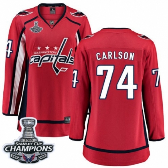 Women's Washington Capitals #74 John Carlson Fanatics Branded Red Home Breakaway 2018 Stanley Cup Final Champions NHL Jersey