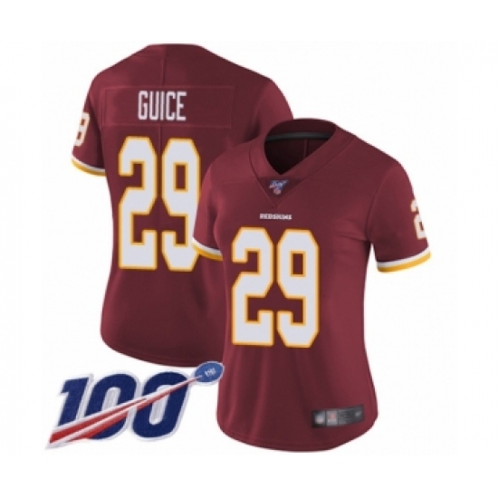 Women's Washington Redskins #29 Derrius Guice Burgundy Red Team Color Vapor Untouchable Limited Player 100th Season Football Jersey
