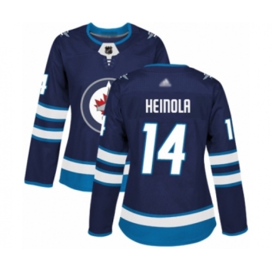 >Women's Winnipeg Jets #14 Ville Heinola Authentic Navy Blue Home Hockey Jersey
