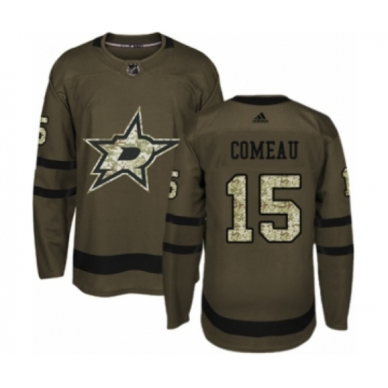 Men's Adidas Dallas Stars #15 Blake Comeau Authentic Green Salute to Service NHL Jersey