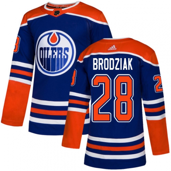 >Youth Adidas Edmonton Oilers #28 Kyle Brodziak Authentic Royal Blue Alternate NHL Jersey