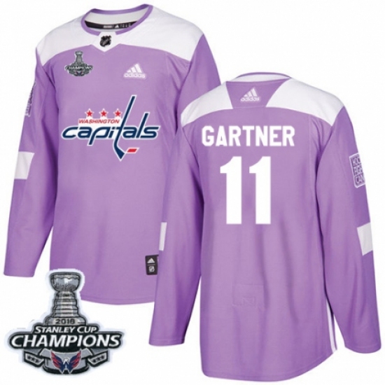 >Youth Adidas Washington Capitals #11 Mike Gartner Authentic Purple Fights Cancer Practice 2018 Stanley Cup Final Champions NHL Jersey