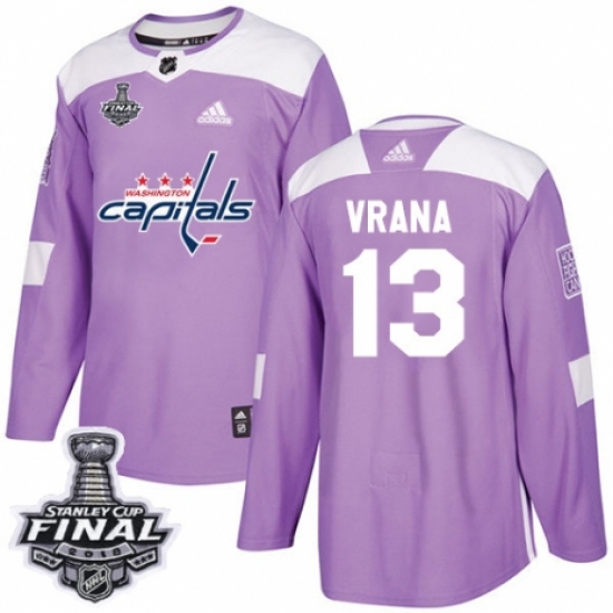 >Youth Adidas Washington Capitals #13 Jakub Vrana Authentic Purple Fights Cancer Practice 2018 Stanley Cup Final NHL Jersey