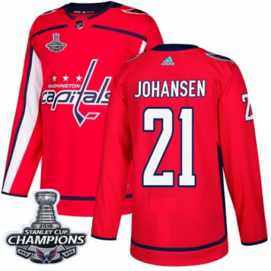 Men's Washington Capitals #21 Lucas Johansen Fanatics Branded Red Home Breakaway 2018 Stanley Cup Final Champions NHL Jersey