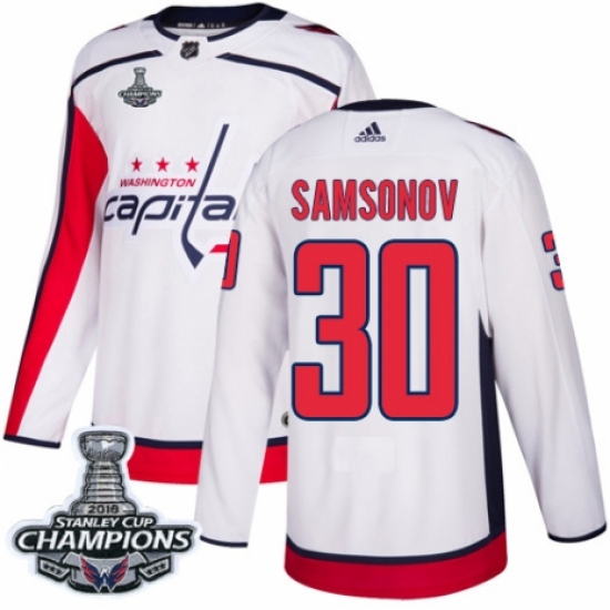 Youth Adidas Washington Capitals #30 Ilya Samsonov Authentic White Away 2018 Stanley Cup Final Champions NHL Jersey