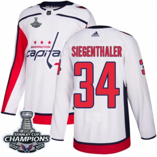 >Youth Adidas Washington Capitals #34 Jonas Siegenthaler Authentic White Away 2018 Stanley Cup Final Champions NHL Jersey