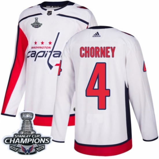 Men's Adidas Washington Capitals #4 Taylor Chorney Authentic White Away 2018 Stanley Cup Final Champions NHL Jersey