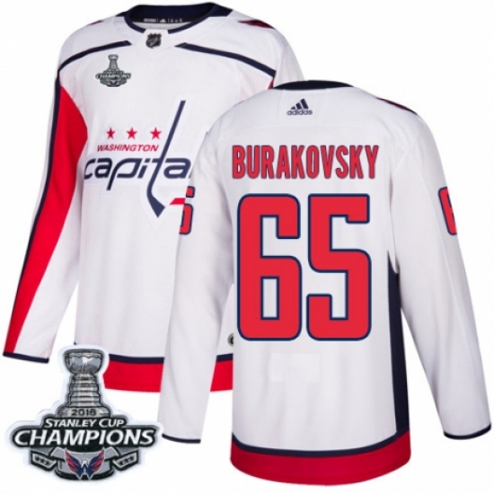 Men's Adidas Washington Capitals #65 Andre Burakovsky Authentic White Away 2018 Stanley Cup Final Champions NHL Jersey
