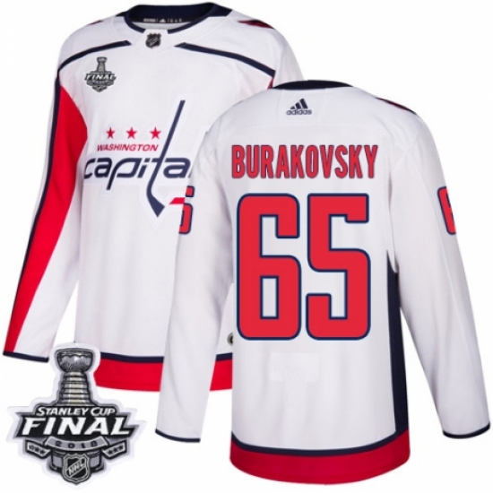 Youth Adidas Washington Capitals #65 Andre Burakovsky Authentic White Away 2018 Stanley Cup Final NHL Jersey