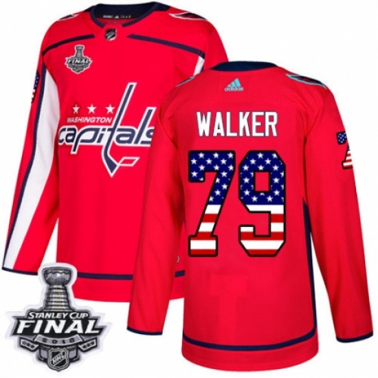 Youth Adidas Washington Capitals #79 Nathan Walker Authentic Red USA Flag Fashion 2018 Stanley Cup Final NHL Jersey