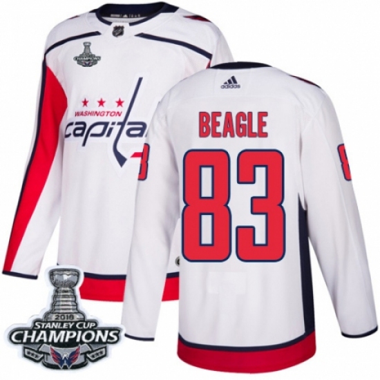 Youth Adidas Washington Capitals #83 Jay Beagle Authentic White Away 2018 Stanley Cup Final Champions NHL Jersey