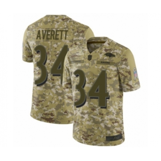 >Youth Baltimore Ravens #34 Anthony Averett Limited Camo 2018 Salute to Service Football Jersey