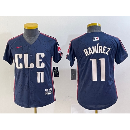 >Youth Cleveland Guardians #11 Jose Ramirez Number Navy 2024 City Connect Limited Stitched Jersey