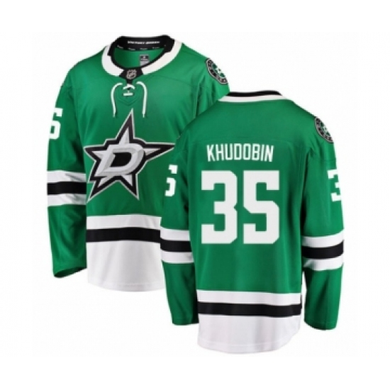 Youth Dallas Stars #35 Anton Khudobin Authentic Green Home Fanatics Branded Breakaway NHL Jersey