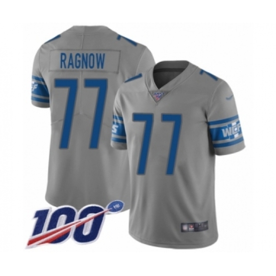 >Youth Detroit Lions #77 Frank Ragnow Limited Gray Inverted Legend 100th Season Football Jersey