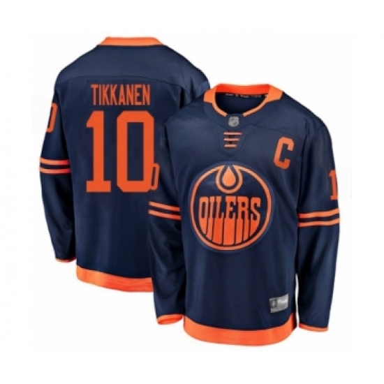 >Youth Edmonton Oilers #10 Esa Tikkanen Authentic Navy Blue Alternate Fanatics Branded Breakaway Hockey Jersey