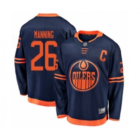 >Youth Edmonton Oilers #26 Brandon Manning Authentic Navy Blue Alternate Fanatics Branded Breakaway Hockey Jersey