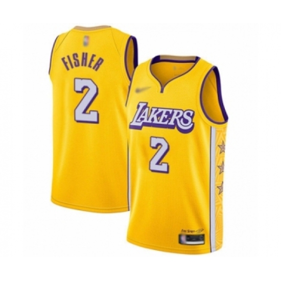 Youth Los Angeles Lakers #2 Derek Fisher Swingman Gold Basketball Jersey - 2019 20 City Edition
