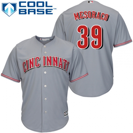 Home>MLB>Cincinnati Reds>Devin Mesoraco>Youth Majestic Cincinnati Reds #39 Devin Mesoraco Replica Grey Road Cool Base MLB Jersey