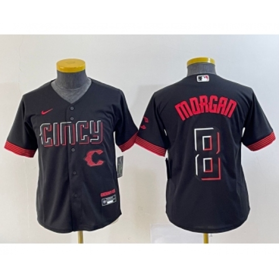 Youth Nike Cincinnati Reds #8 Joe Morgan Black 2023 City Connect Cool Base Stitched Jersey