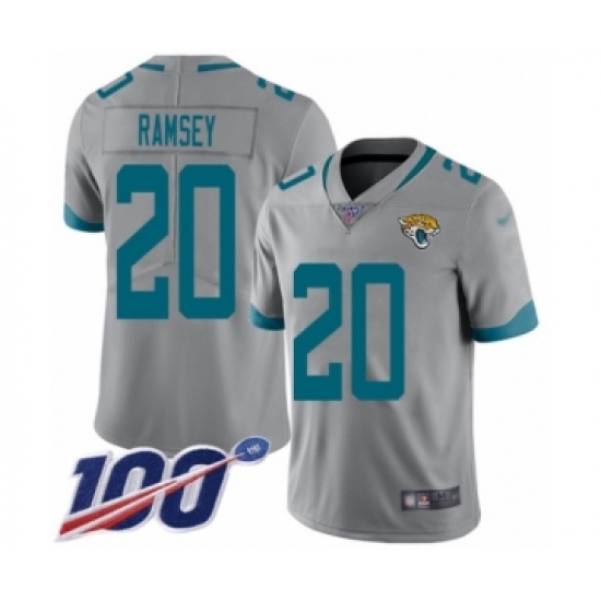 >Youth Nike Jacksonville Jaguars #20 Jalen Ramsey Silver Inverted Legend Limited 100th Season NFL Jersey