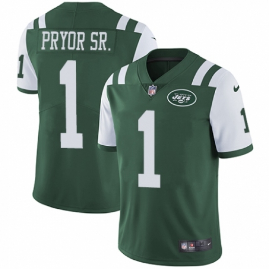 Men's Nike New York Jets #1 Terrelle Pryor Sr. Green Team Color Vapor Untouchable Limited Player NFL Jersey