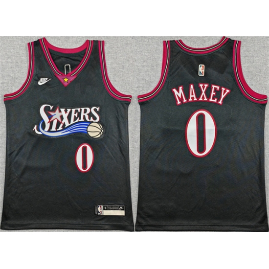 Men's Philadelphia 76ers #0 Tyrese Maxey Black 2025 Classic Edition Stitched Jersey