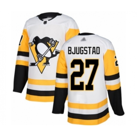 >Youth Pittsburgh Penguins #27 Nick Bjugstad Authentic White Away Hockey Jersey