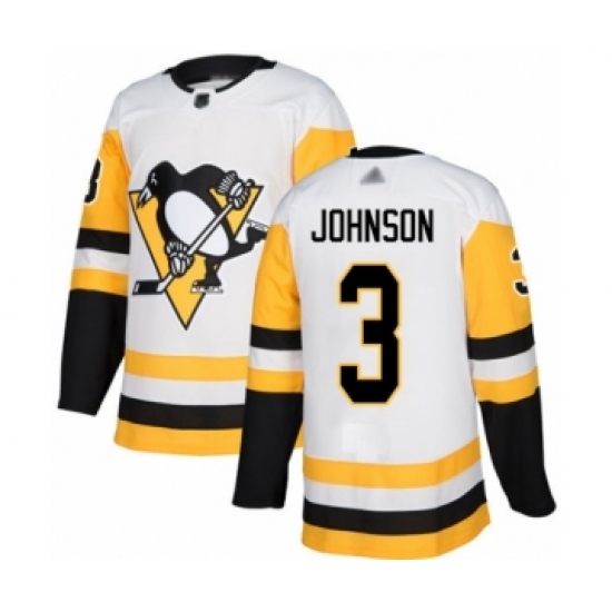 >Youth Pittsburgh Penguins #3 Jack Johnson Authentic White Away Hockey Jersey