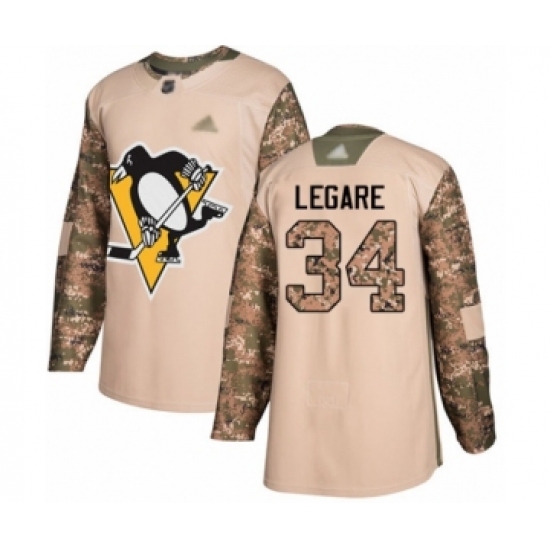 >Youth Pittsburgh Penguins #34 Nathan Legare Authentic Camo Veterans Day Practice Hockey Jersey