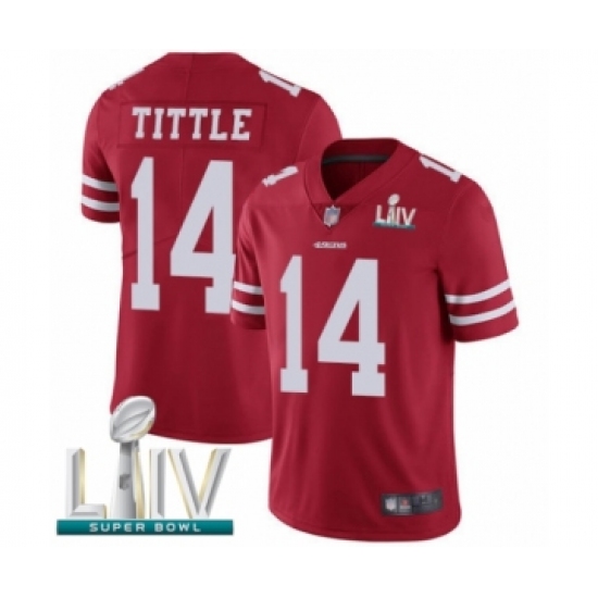 >Youth San Francisco 49ers #14 Y.A. Tittle Red Team Color Vapor Untouchable Limited Player Super Bowl LIV Bound Football Jersey